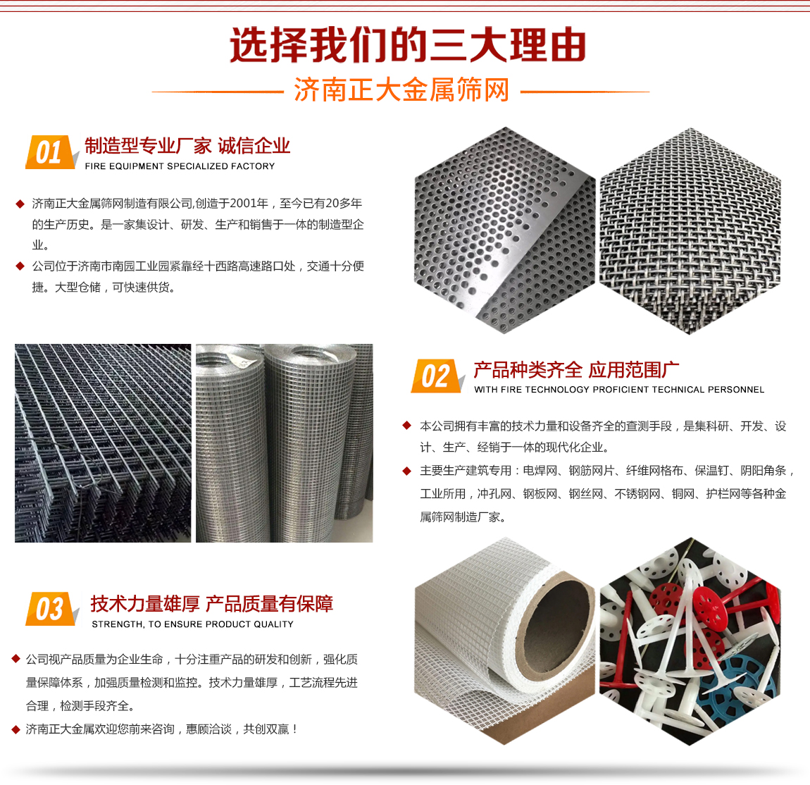 濟(jì)南正大金屬篩網(wǎng)制造有限公司,成立于2001年,至今已有20多年的生產(chǎn)歷史,主要生產(chǎn)建筑用:電焊網(wǎng)、鋼筋網(wǎng)片、纖維網(wǎng)格布、保溫釘、陰陽角條,工業(yè)所用,沖孔網(wǎng)、鋼板網(wǎng)、鋼絲網(wǎng)、不銹鋼網(wǎng)、銅網(wǎng)、護(hù)欄網(wǎng)等各種金屬篩網(wǎng)制造廠家。 本公司擁有豐富的技術(shù)力量和設(shè)備齊全的查測手段,是集科研、開發(fā)、設(shè)計(jì)、生產(chǎn)、經(jīng)銷于一體的現(xiàn)代化企業(yè)。公司位于濟(jì)南市南園工業(yè)園緊靠經(jīng)十西路高速路口處,交通十分便捷。